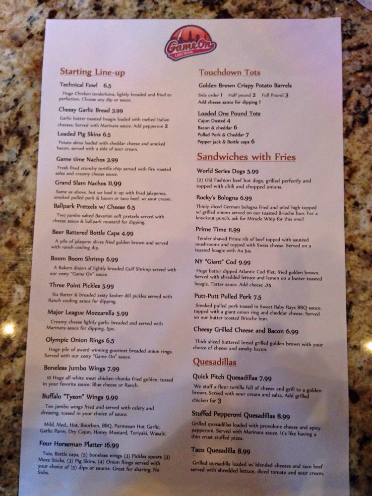 Introducing the menu at Game On Lakewood, a popular sports bar in Lakewood, OH, offering a variety of New American dishes. With a range of options like loaded potato skins, fried mac & cheese, and Philly steak sandwiches, this place caters to all tastes. The gourmet hot dogs, including the L.A. Dog and New Orleans Dog, are a must-try for hot dog lovers. Customers praise the great atmosphere, numerous TVs for watching sports games, and excellent service. Whether you're looking for a place to watch a game with friends or enjoy a casual meal, Game On Lakewood has something for everyone. Don't miss out on their delicious wings and diverse menu offerings. Make a reservation and experience the excitement at Game On Lakewood!